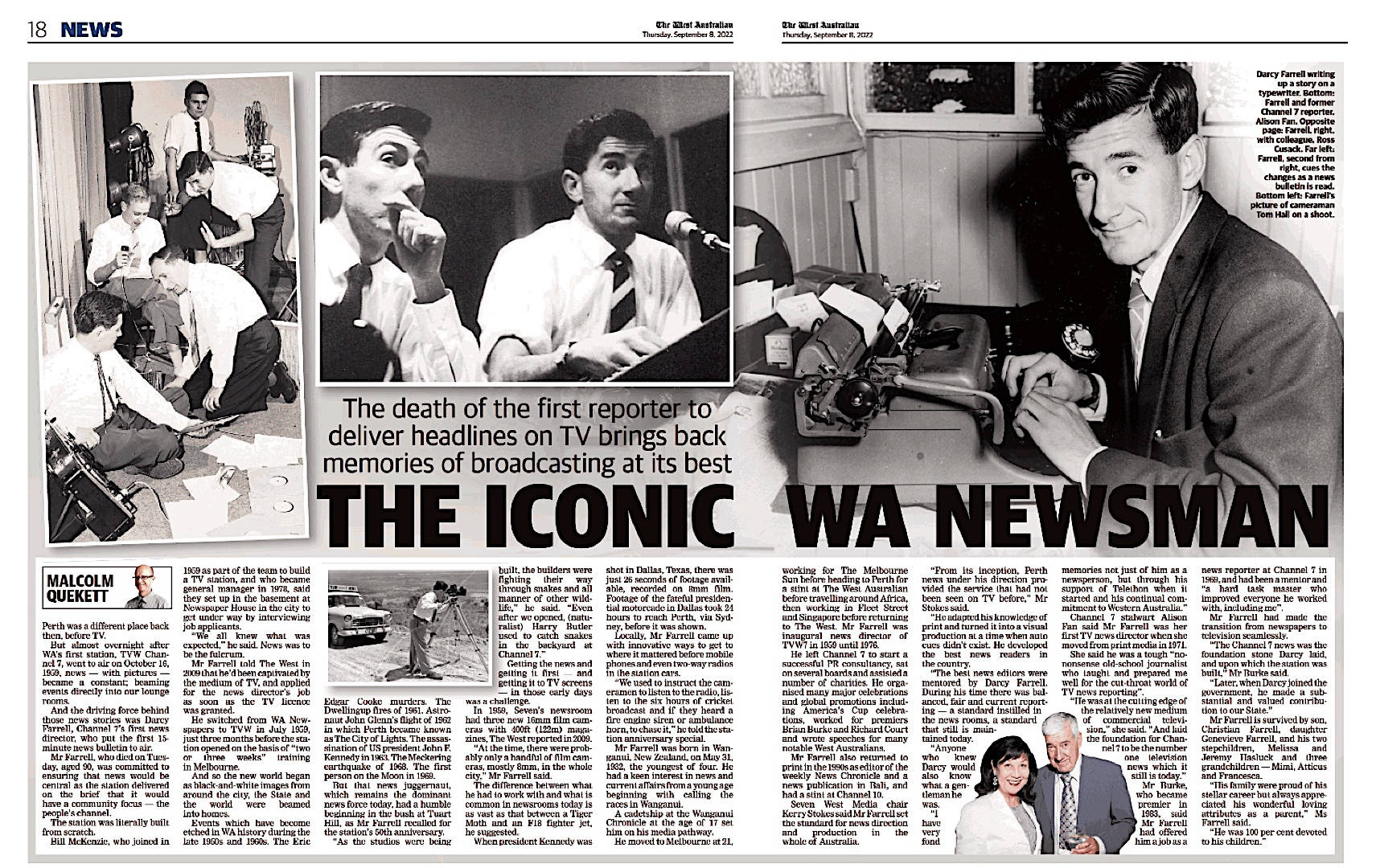 He was highly respected and admired – particularly by his colleagues in the news media. A tribute in The West Australian newspaper on 8th September 2022 was headlined, “The Iconic WA Newsman”.