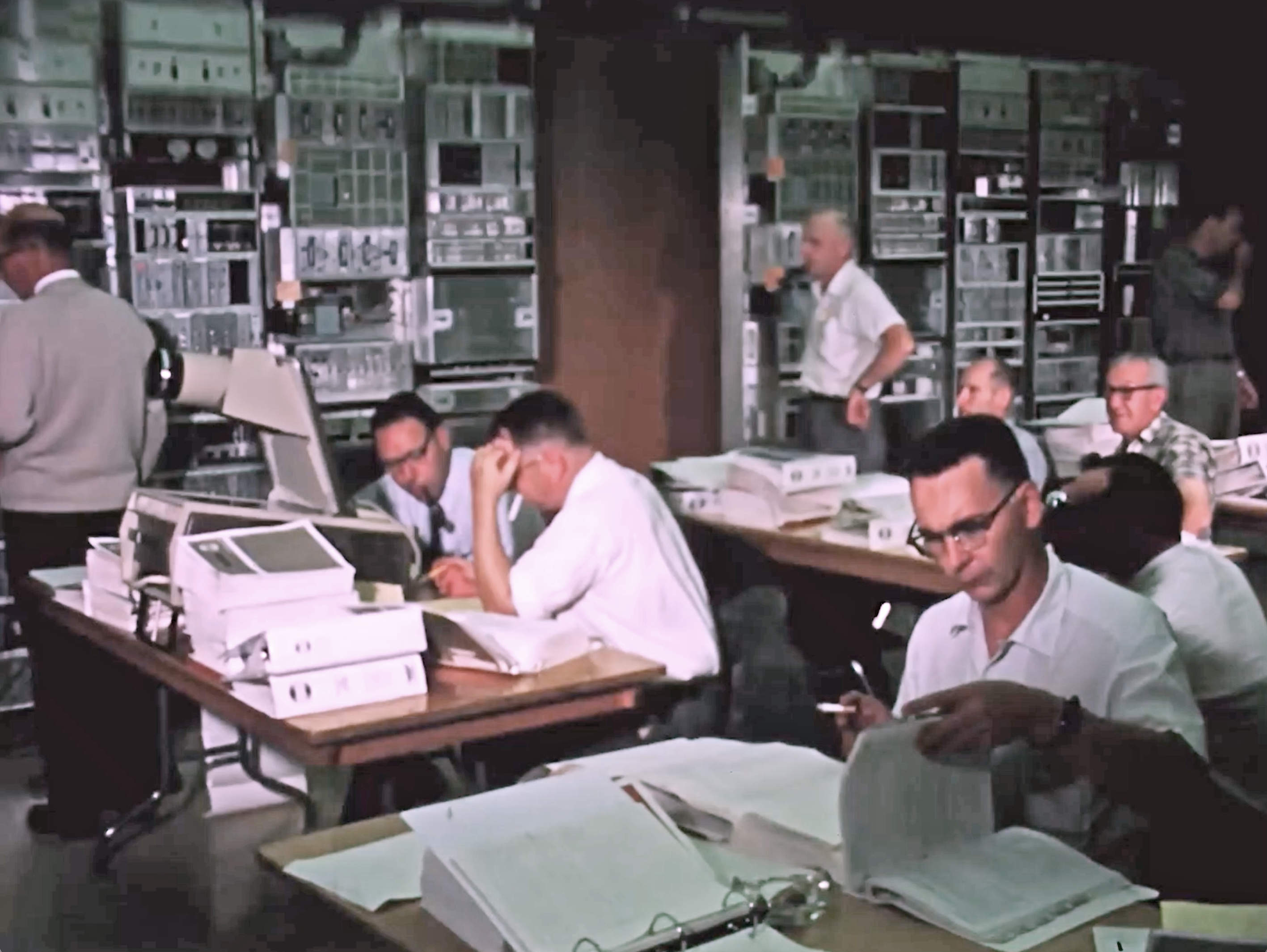 A Collins Radio training course on the Unified S-Band system in Dallas, circa 1965. Frame from a Collins Radio promotional film, with thanks to Don Stulken of the Arthur A Collins Legacy Association. |