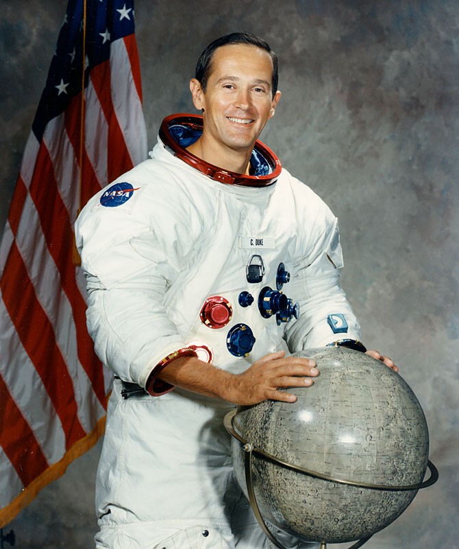 on the backup crew for Apollo 13 before joining the Apollo 16 crew. Duke,