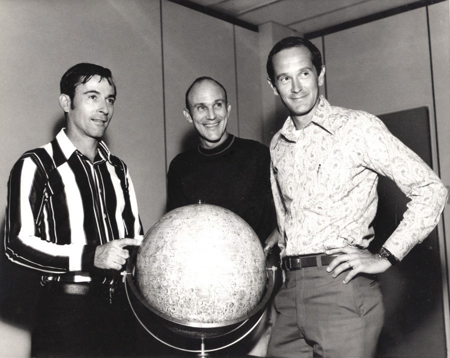 The Apollo 16 crew. John Young, Ken Mattingly and Charlie Duke. NASA photo. Scan: Hamish Lindsay. |