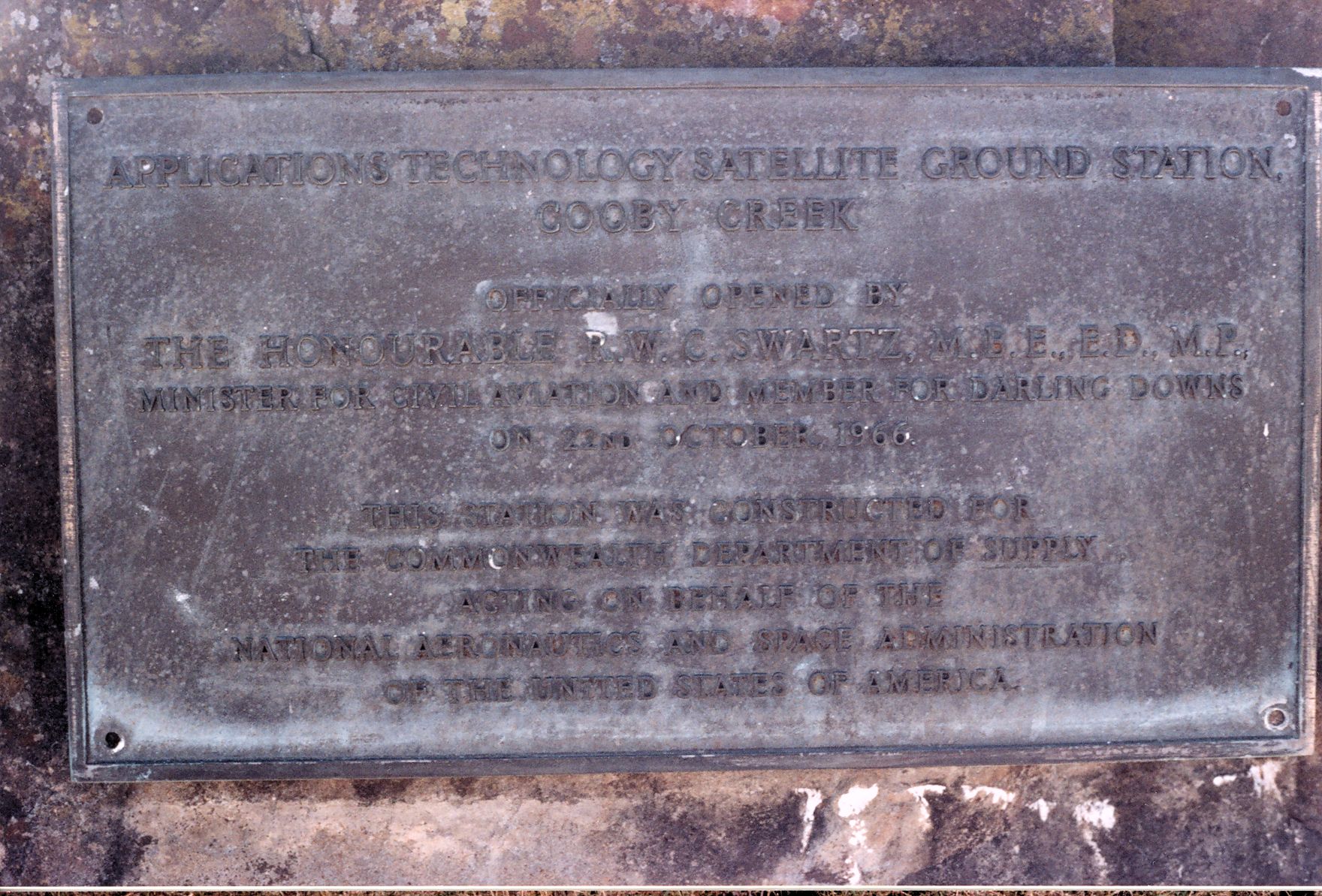 Cooby Creek Tracking Station site, May 2004. The plaque. |