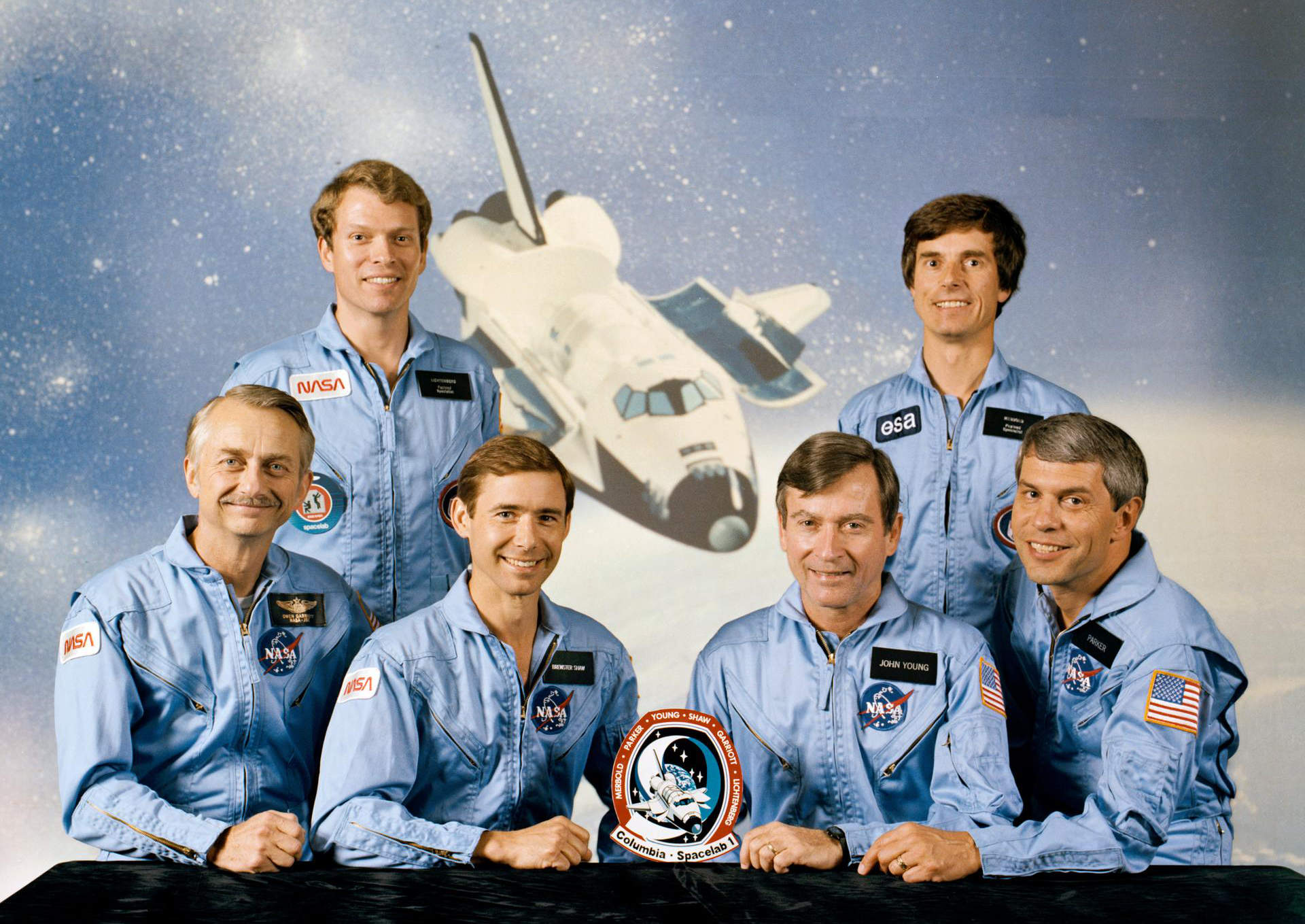 Owen Garriott (front left) and the rest of the crew of STS-9. NASA image S83-35017. |