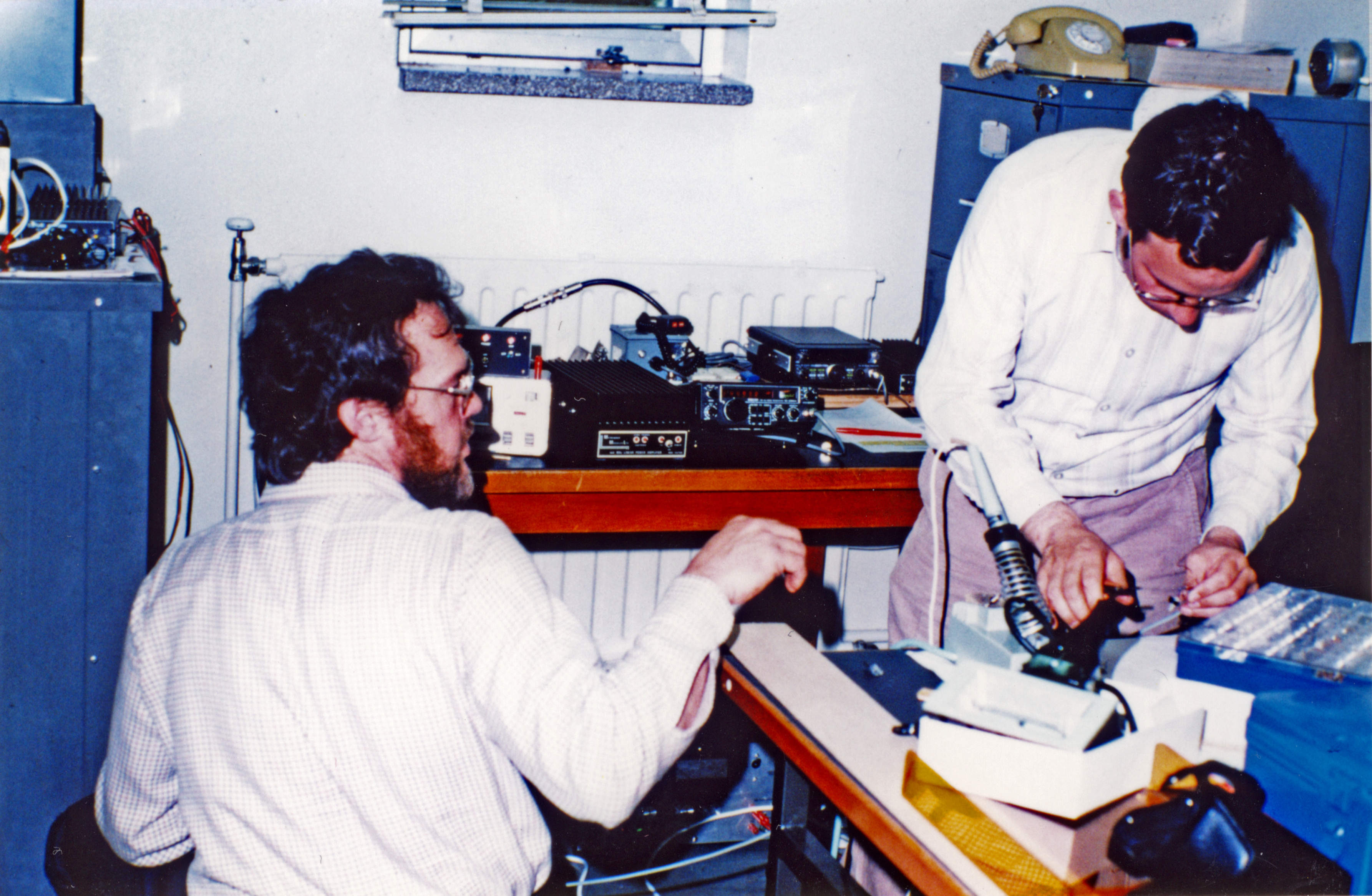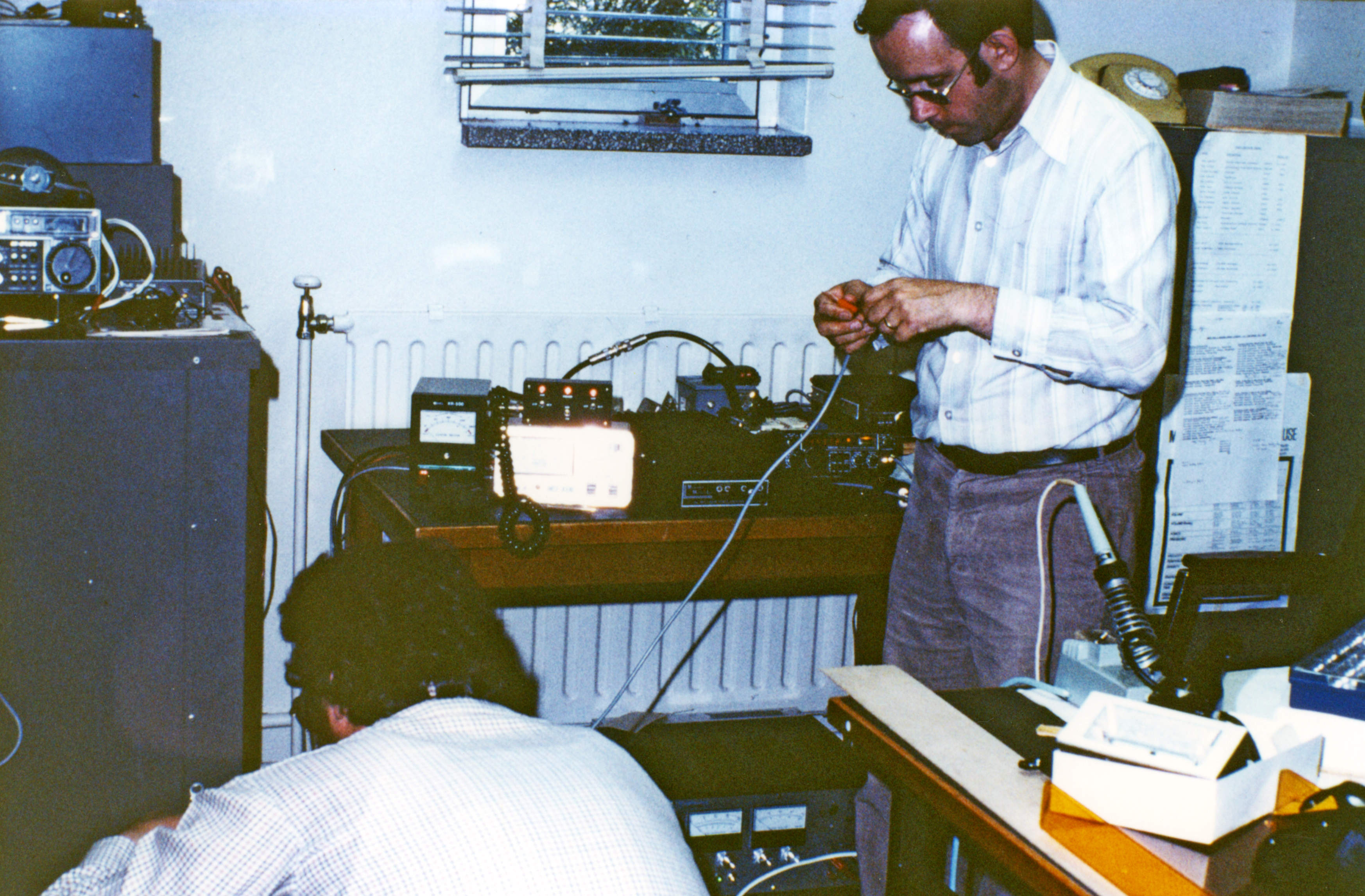 A room was made available at the switching centre and the amateur radio technicians installed the equipment. They had constructed special antennas and these were mounted on scaffolding erected on the roof of the building.