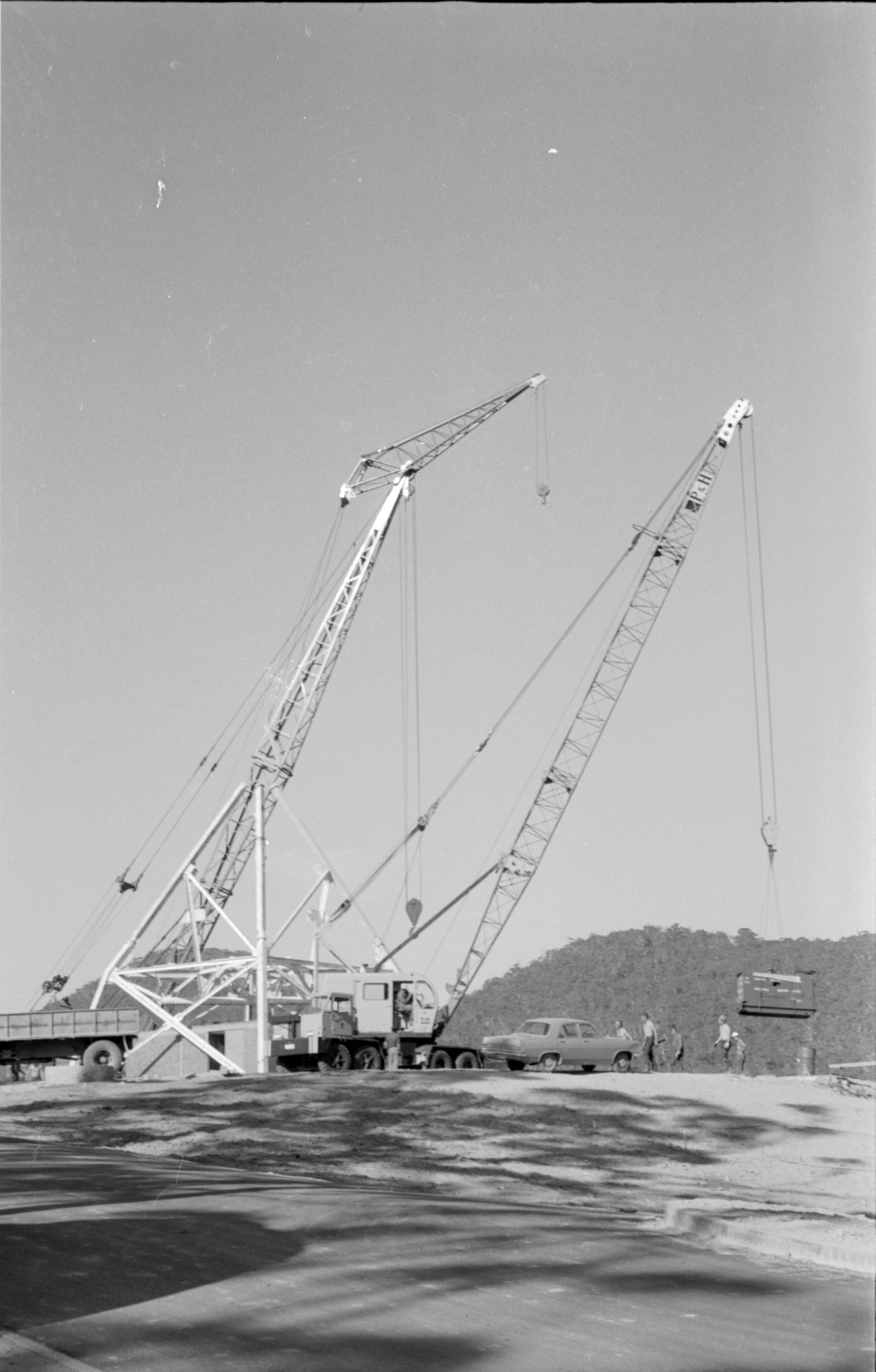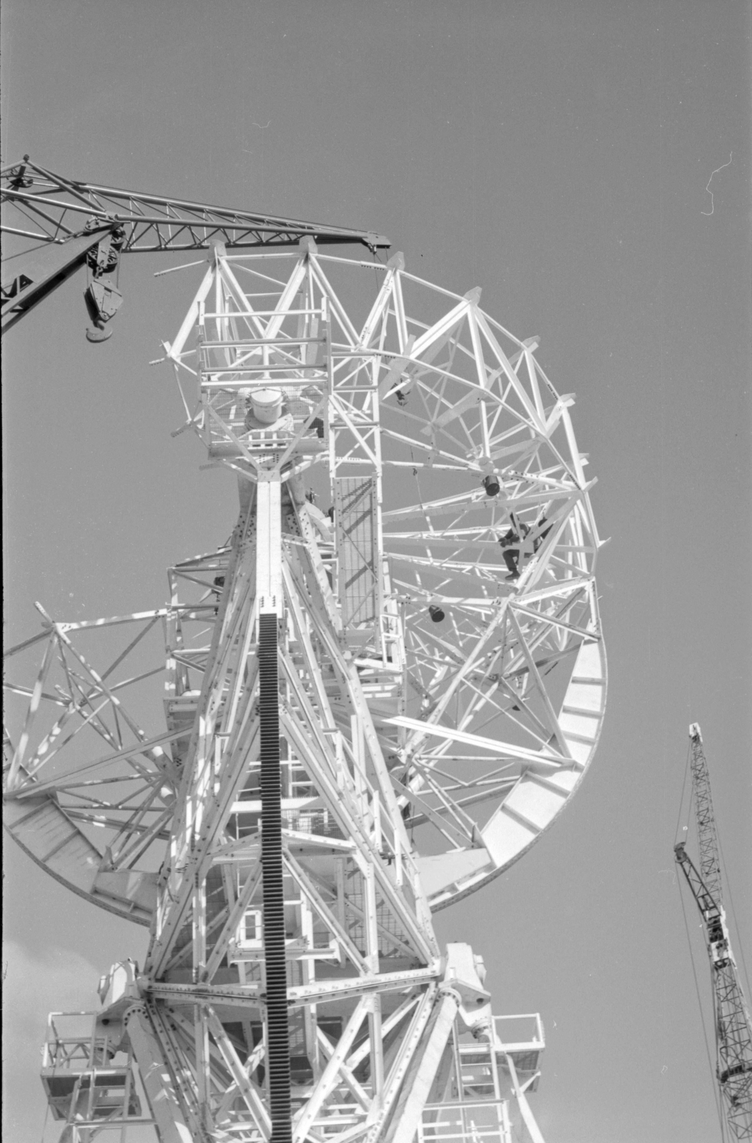 Back at Honeysuckle Creek, Ken captured this image of the turret for the 26-metre antenna being assembled. 35mm scan: Colin Mackellar. |