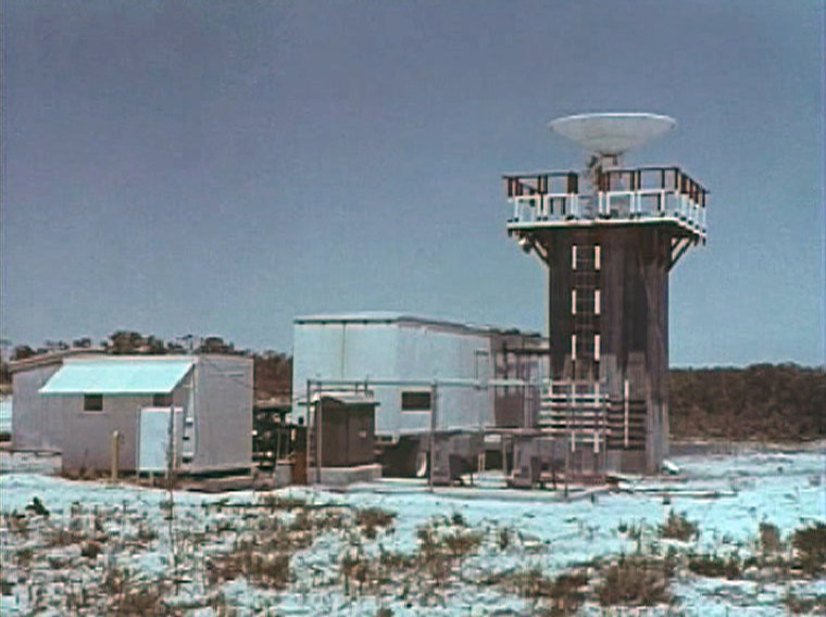 The VERLORT tower and trailer at Muchea, late 1961. Frame grab by Colin Mackellar from NASA film. |