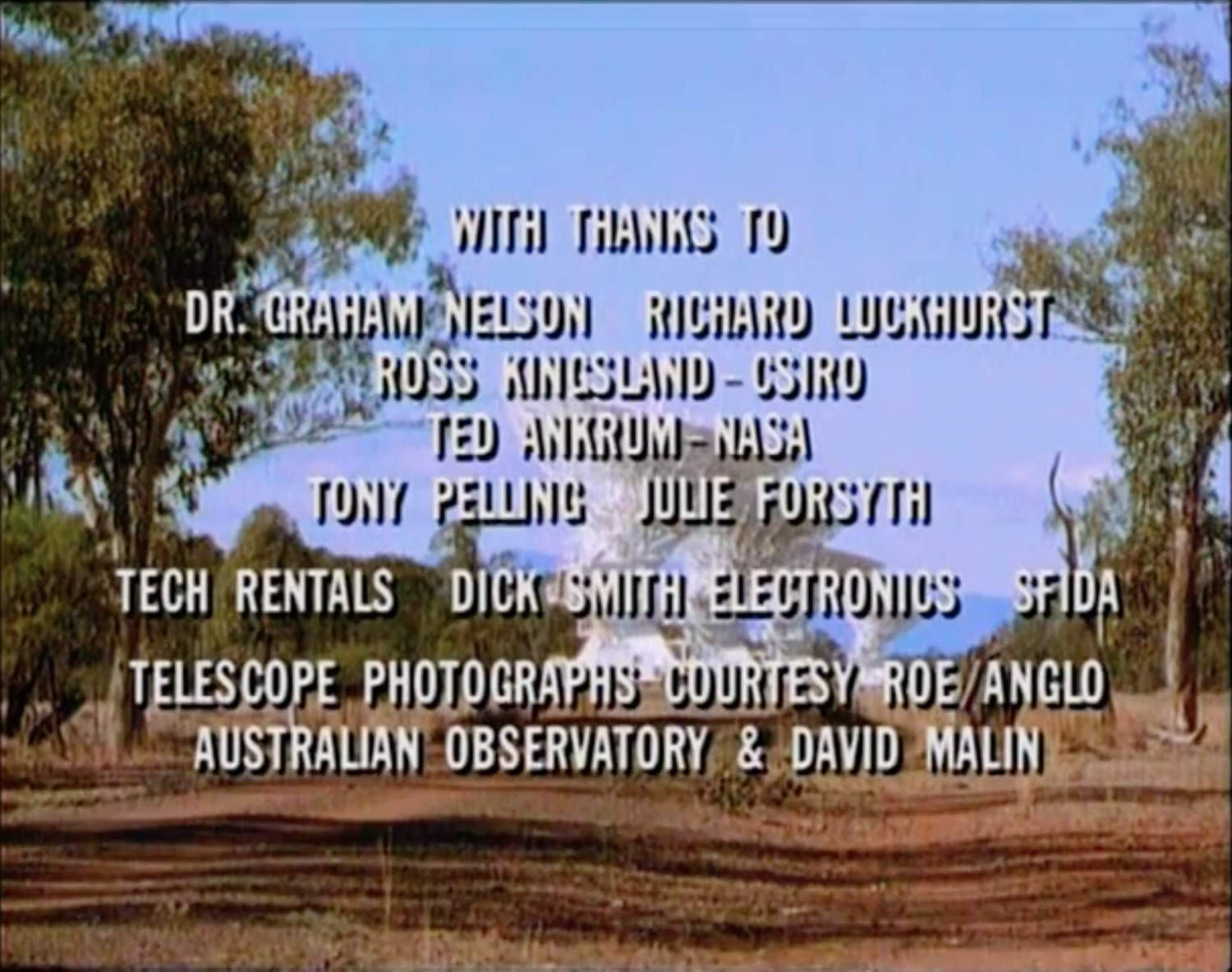 Screen credits for the Sky Trackers episode set at Narrabri. |