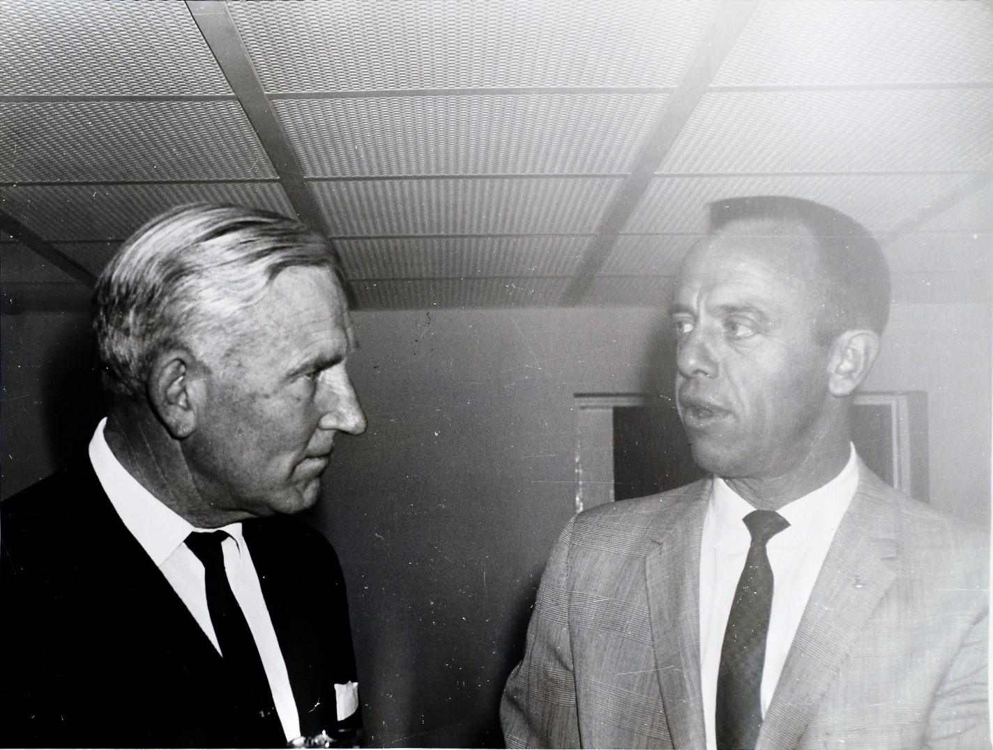 Deputy Secretary to the Department of Supply, Lloyd Bott, and the Department of Supply’s Jim Mills, speak with Alan Shepard at the Tropical Festival Show Grounds in September 1968.